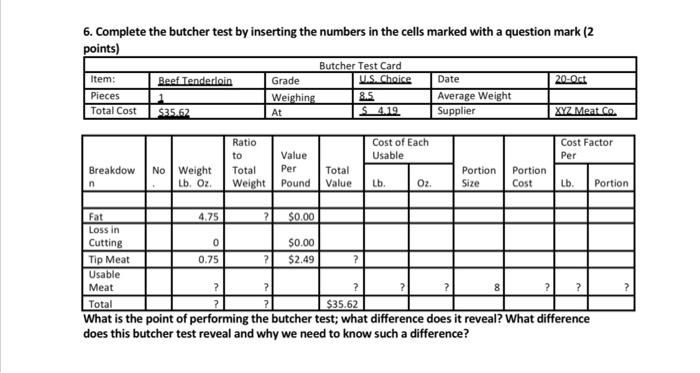 Solved 6 Complete The Butcher Test By Inserting The Numbers Chegg Com